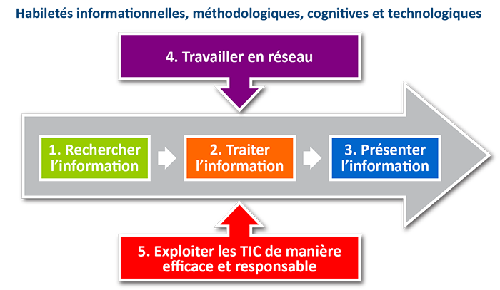 Le Profil TIC est constitué de 5 habiletés informationnelles, méthodologiques et technologiques attendues chez une personne finissante du collégial.